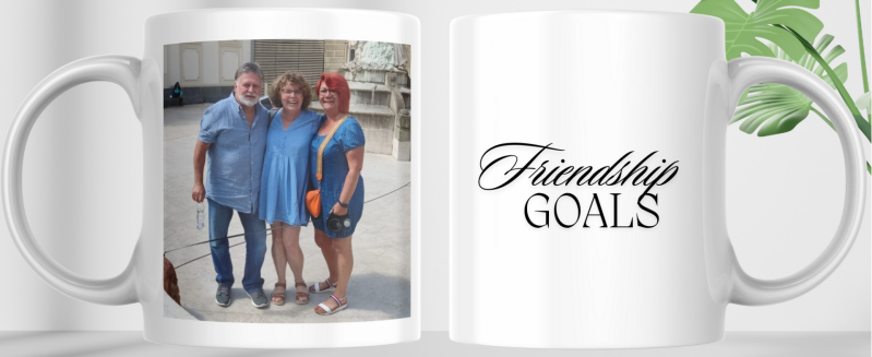 Gestalte deine Tasse ganz nach deinen Wünschen! Lade dein Lieblingsfoto hoch und füge einen persönlichen Wunschtext hinzu. Egal, ob es sich um ein lustiges Zitat, einen inspirierenden Spruch oder einen liebevollen Gruß handelt – wir machen deine Tasse zu einem Unikat.