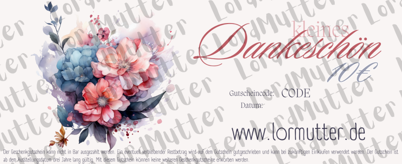 Ob zur Hochzeit, zum Geburtstag, als kleiner Trost oder einfach, um Danke zu sagen – meine Gutscheine sind die ideale Lösung, wenn du jemandem eine Freude machen möchtest. Du kannst ganz bequem Deinen Wunschbetrag wählen.